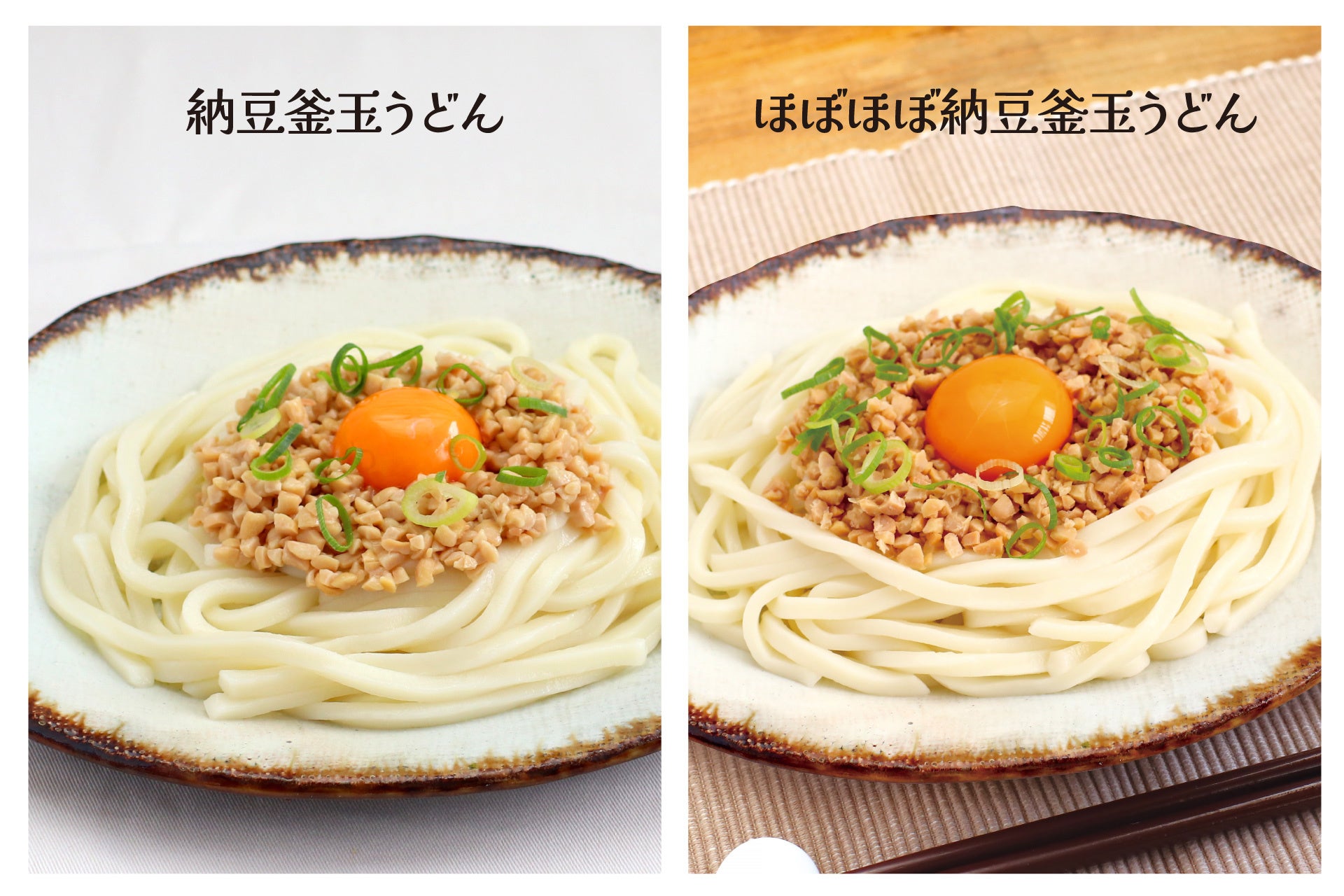・めんつゆとの相性バツグン!「ほぼほぼ納豆釜玉うどん」
