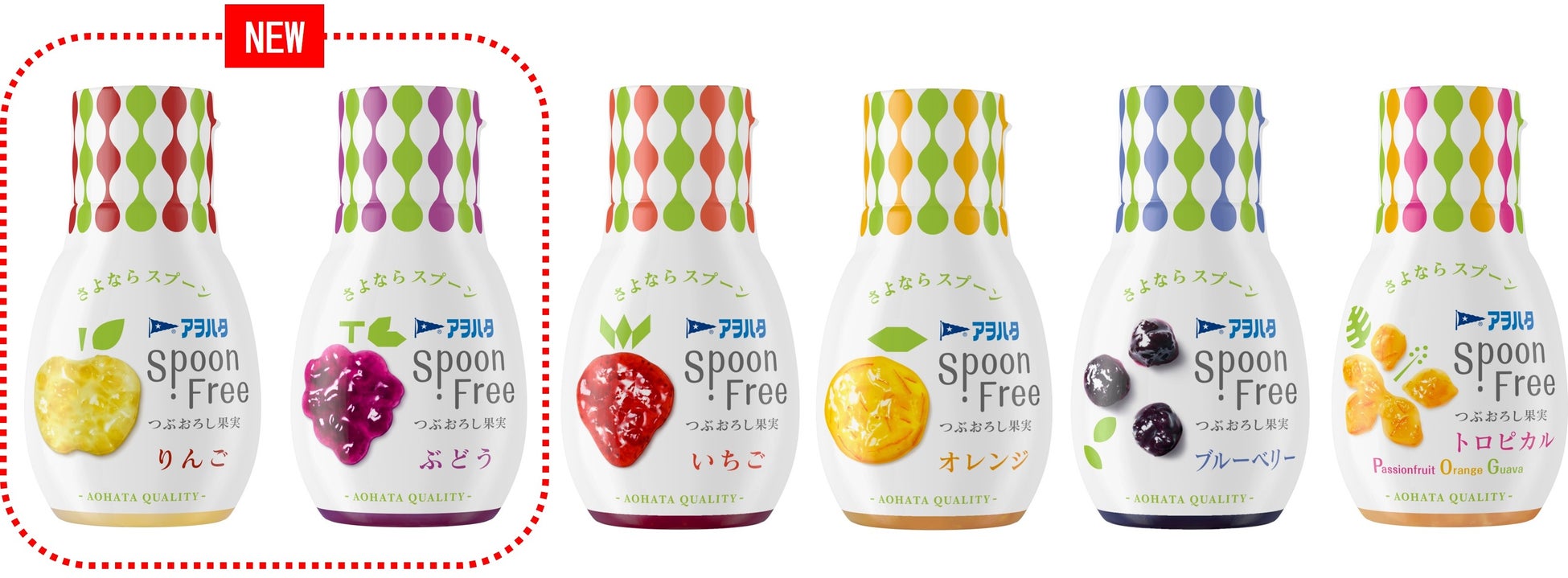 「アヲハタ Spoon Free」シリーズから「りんご」「ぶどう」を新発売 さらにシリーズの容器を改良