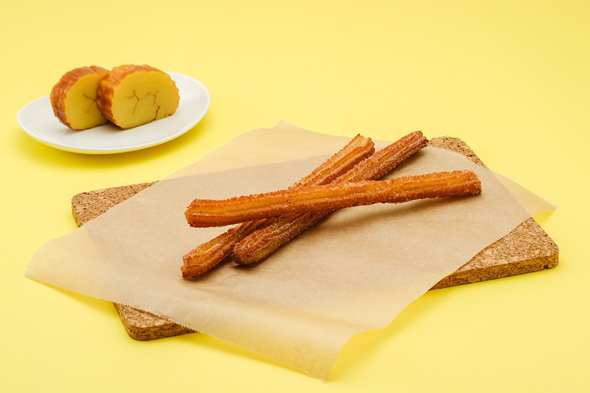伊達巻チュロスは軽やかな食感が特徴です。外側の皮はカリッと香ばしく、一方で中の生地には伊達巻のしっとりとした食感が感じられます。表面にはシナモンシュガーをまぶしており、噛んだ瞬間に爽やかな香りが口の中に広がります。食べ歩きにピッタリのサイズで、小腹が空いた時やお食事後のデザートとしてお召し上がりいただけます。