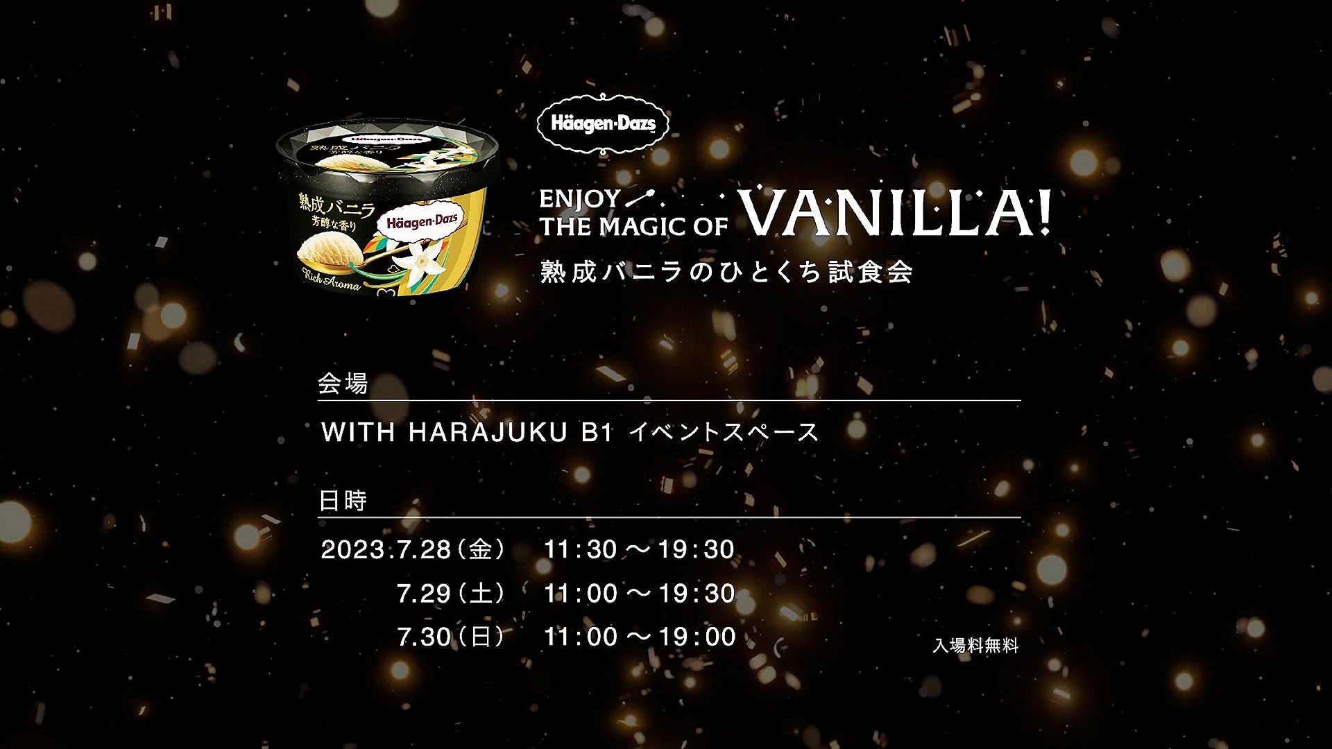 新発売の『熟成バニラ 芳醇な香り』が一足先に試せる『ENJOY THE MAGIC OF VANILLA! 熟成バニラのひとくち試食会』を7月28日(金)から3日間限定で開催します。