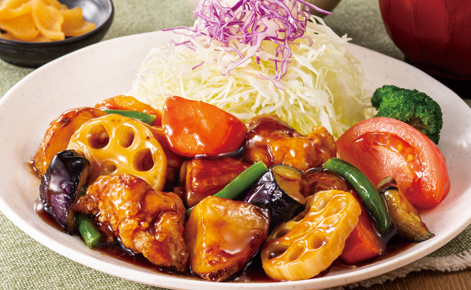 鶏と野菜の黒酢あん定食 920円(税込)