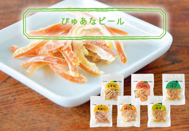 ワックスと防腐剤を使用していない和歌山県産柑橘の果皮と、グラニュー糖のみで作った、柑橘の果皮の甘さと酸味、ほろ苦さがクセになる柑橘のピールです。