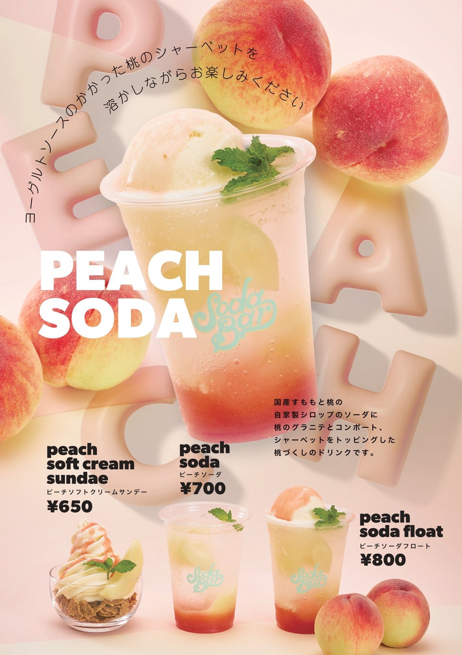 ビーズインターナショナルが運営するソーダ専門店『SODA BAR』より毎年大人気の桃のソーダが期間限定で販売