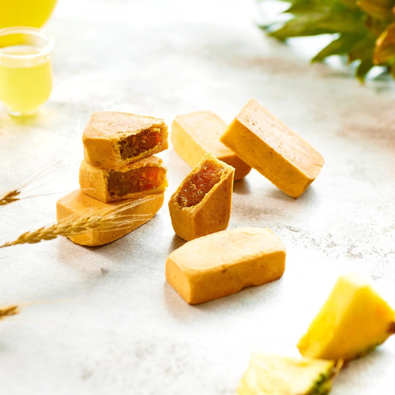 台湾産パイナップルを100%使用した “万華自家製パイナップルケーキ”は、甘酸っぱい酸味と食感が楽しめる伝統的な味そのままに、お店で一つひとつ焼き上げています。“クラシックパイナップルケーキ”は、台湾産の甘酸っぱいパイナップルに冬瓜をバランスよくミックス。よりまろやかな味わいです。