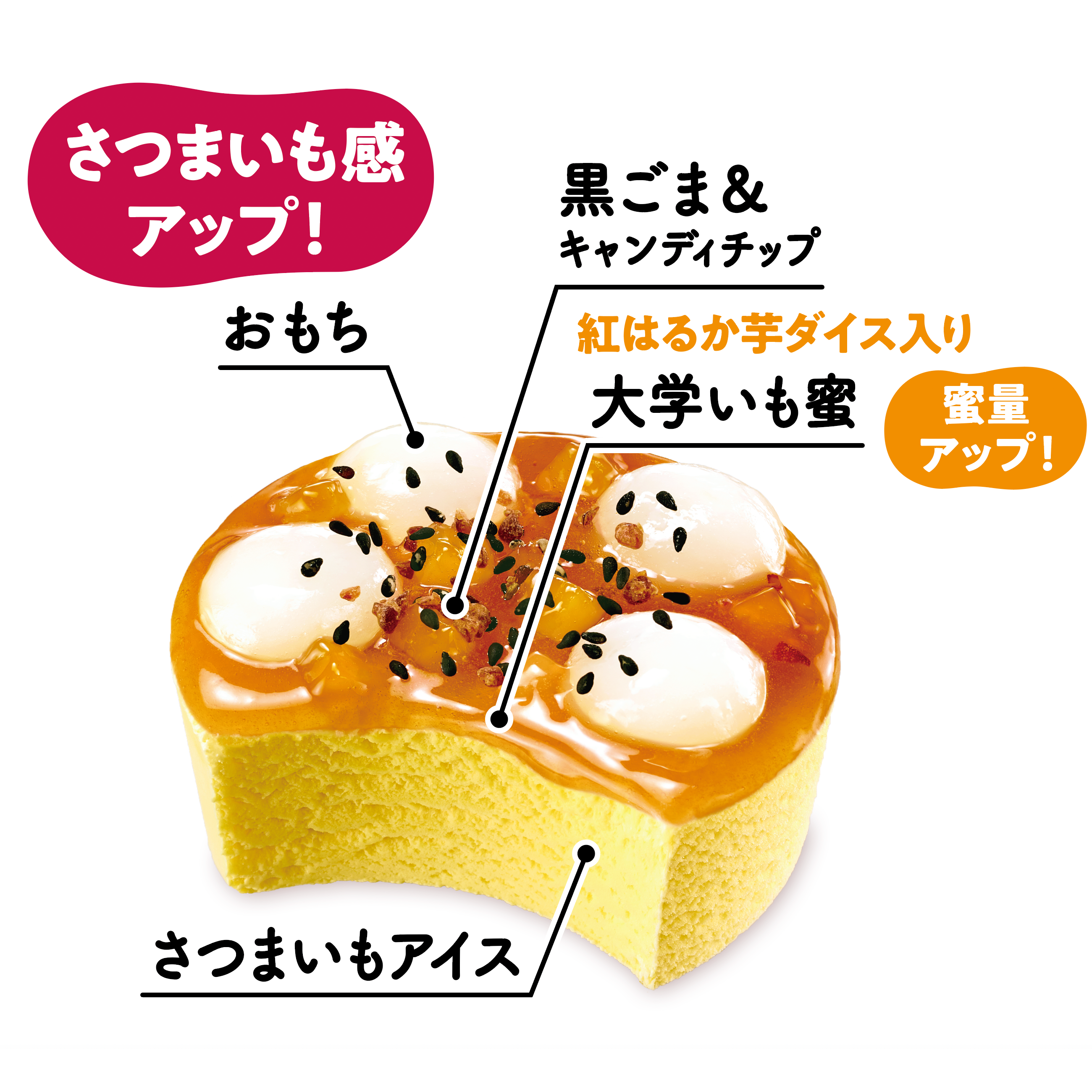 ~カリカリ・ねっとり・もちもちな味わいはそのまま、「紅はるか」ペースト2倍(アイス中配合量)、大学いも蜜約10%増量でさらにさつまいも感がアップ~