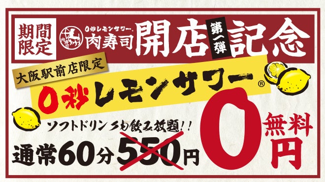 『0秒レモンサワー 大阪駅前 肉寿司』が2023年8月18日(金)グランドオープン!!!