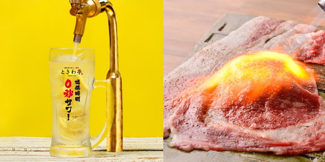 ストレスフリーな元祖・焼肉エンタメ酒場 ときわ亭の『0秒レモンサワー』と〈肉×寿司〉新たな発想で生み出される元祖『肉寿司』両ブランドの名物を取り揃えた待望のコラボレーション。