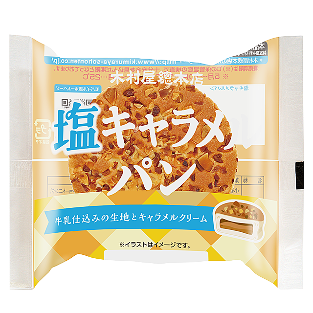 塩キャラメルクリームを牛乳仕込みの生地で包み、アーモンドをトッピングしました。