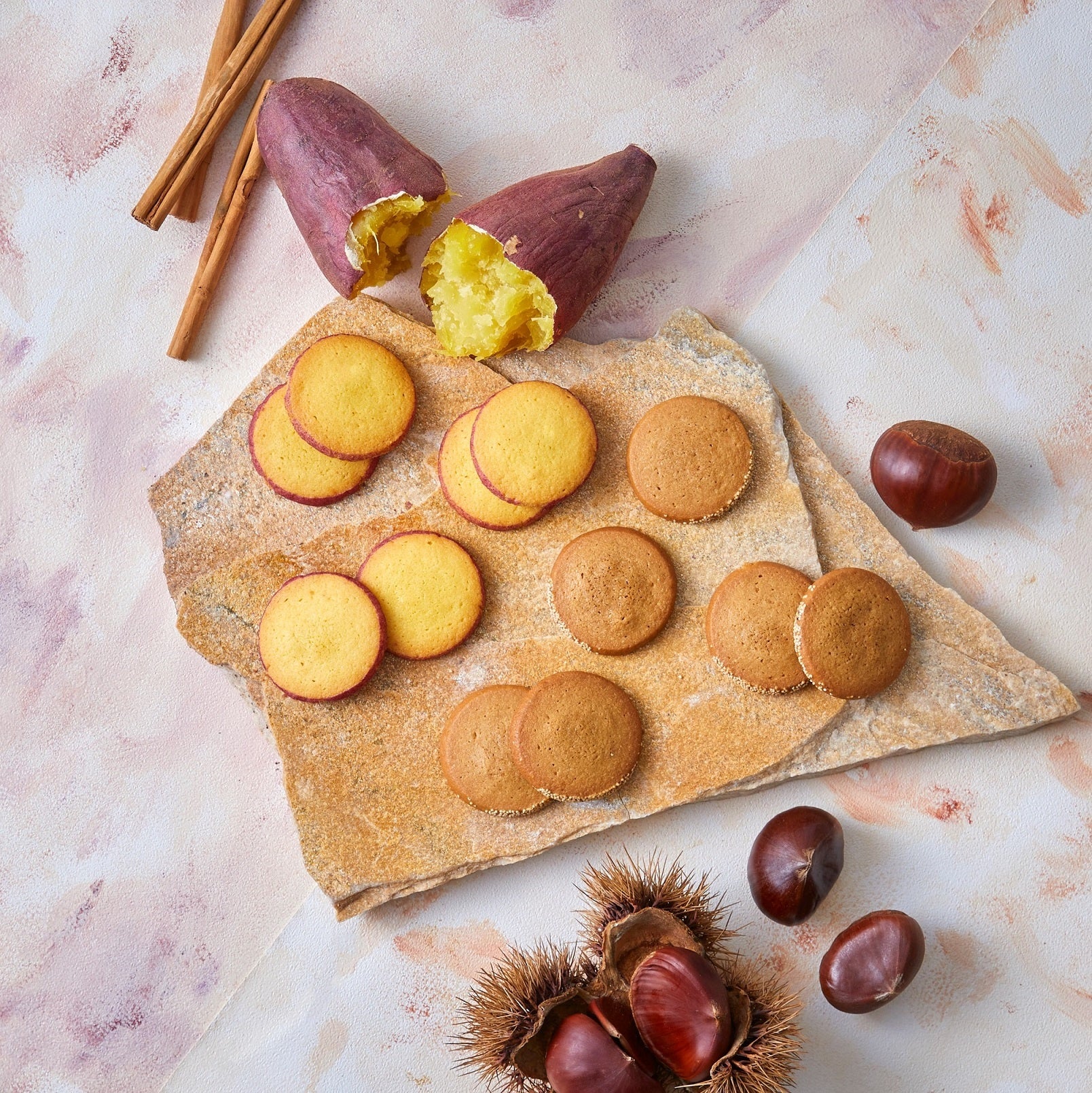 「カドー ドゥ ロートンヌ」のサブレ2種をセットにしてお渡しします。ぜひ新宿御苑前店、下北沢店にも訪れてヨックモックの秋の味覚をお楽しみください。
