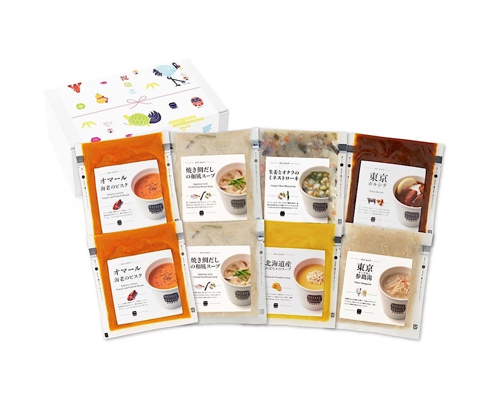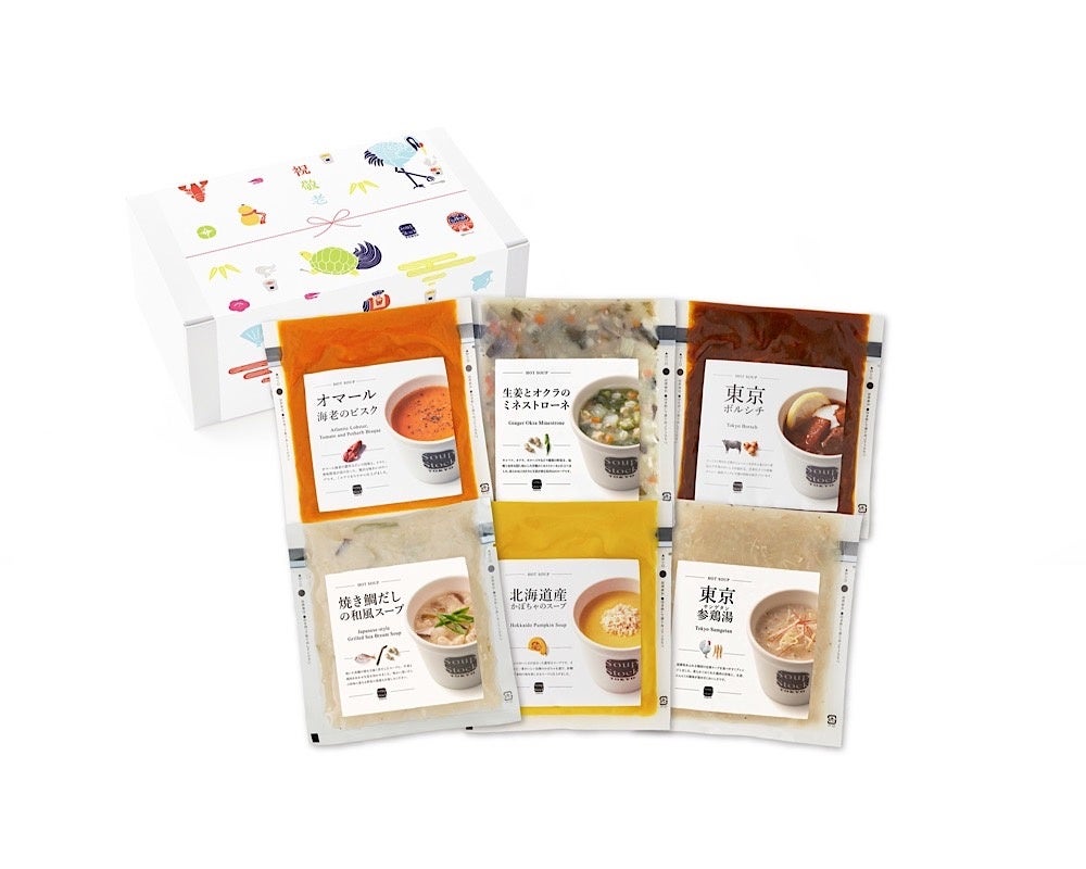 今回のギフトには、定番の「オマール海老のビスク」や「東京ボルシチ」を始め、「焼き鯛だしの和風スープ」や「東京参鶏湯」など、体をいたわれるようなスープを選びました。