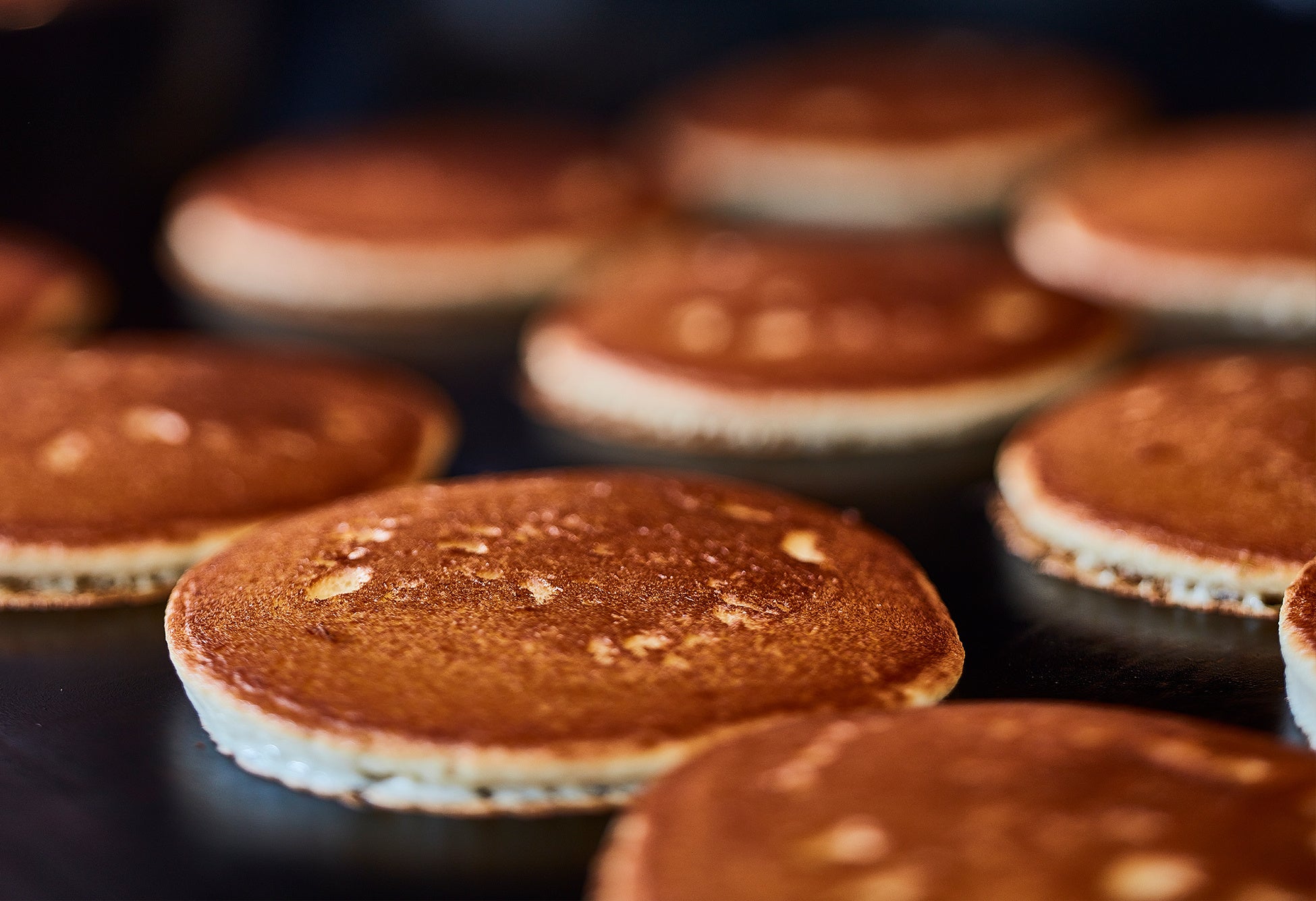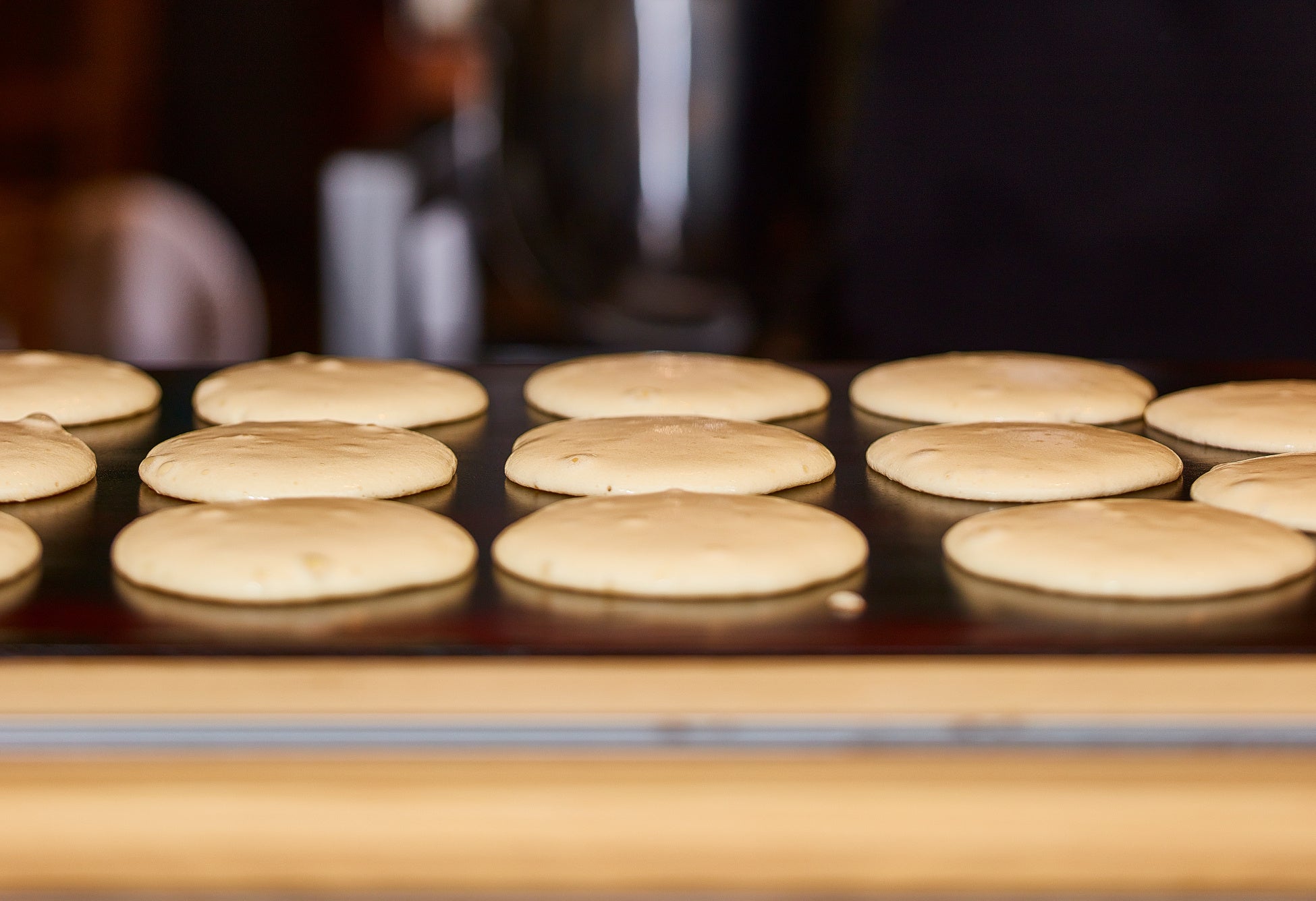 タネを落とすと空気を含んで少しずつ膨らんできていきます。大きさによって焼き上がり方が違うのでひとつひとつ丁寧に様子を見ます。