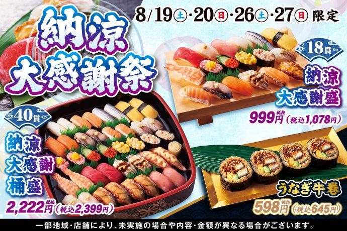 持ち帰り寿し店の「⼩僧寿し」「茶⽉」を運営する株式会社⼩僧寿しは、持ち帰り寿し店「⼩僧寿し」にて、8月19日(土)~20日(日)・26日(土)~27日(日)の期間限定で、『納涼大感謝祭』を開催致します。