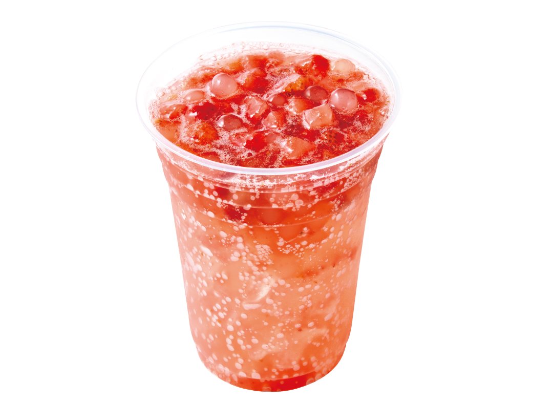 ミルクのコクと、ごろごろにカットされたストロベリーの果肉の甘さをしっかりと楽しむことができる、フルーツドリンクです。もちもちとした食感のタピオカがたまらない夏季限定商品です。
