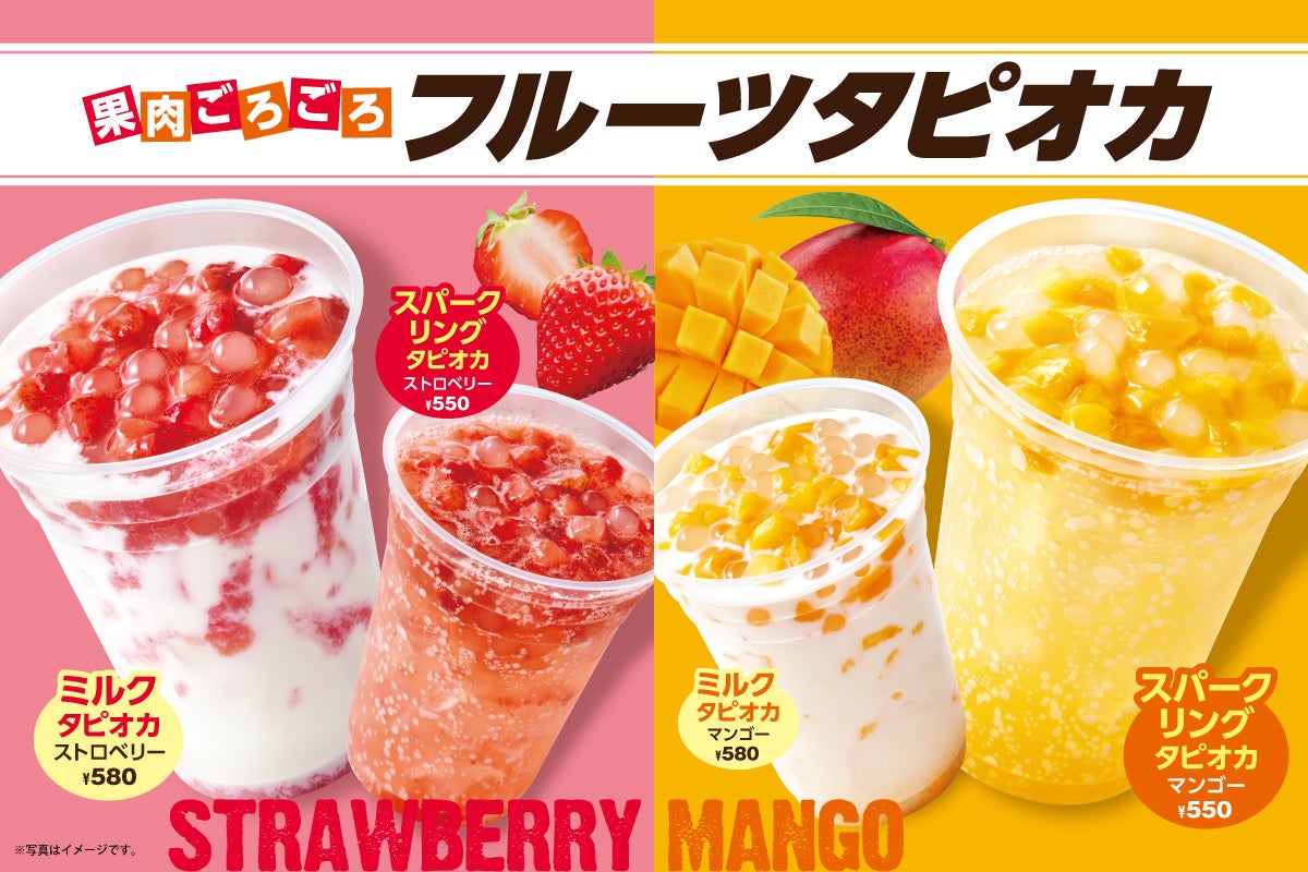 ご好評につき販売店舗を拡大!ストロベリー·マンゴーの果肉ごろごろ フルーツタピオカ!8月21日(月)から 全店で