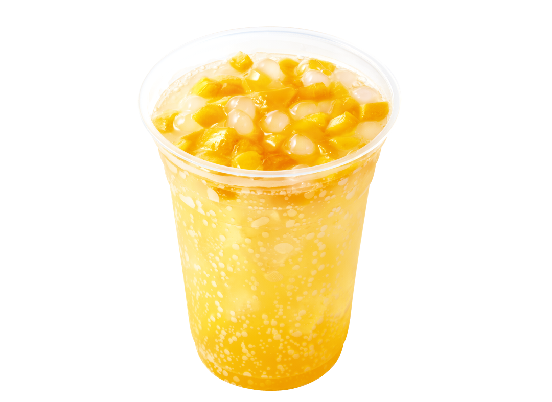 セブンアップのしゅわしゅわ感と、ごろごろにカットされたマンゴーの果肉をしっかりと楽しむことができる、爽快感のあるフルーツドリンクです。もちもちとした食感のタピオカがたまらない夏季限定商品です。