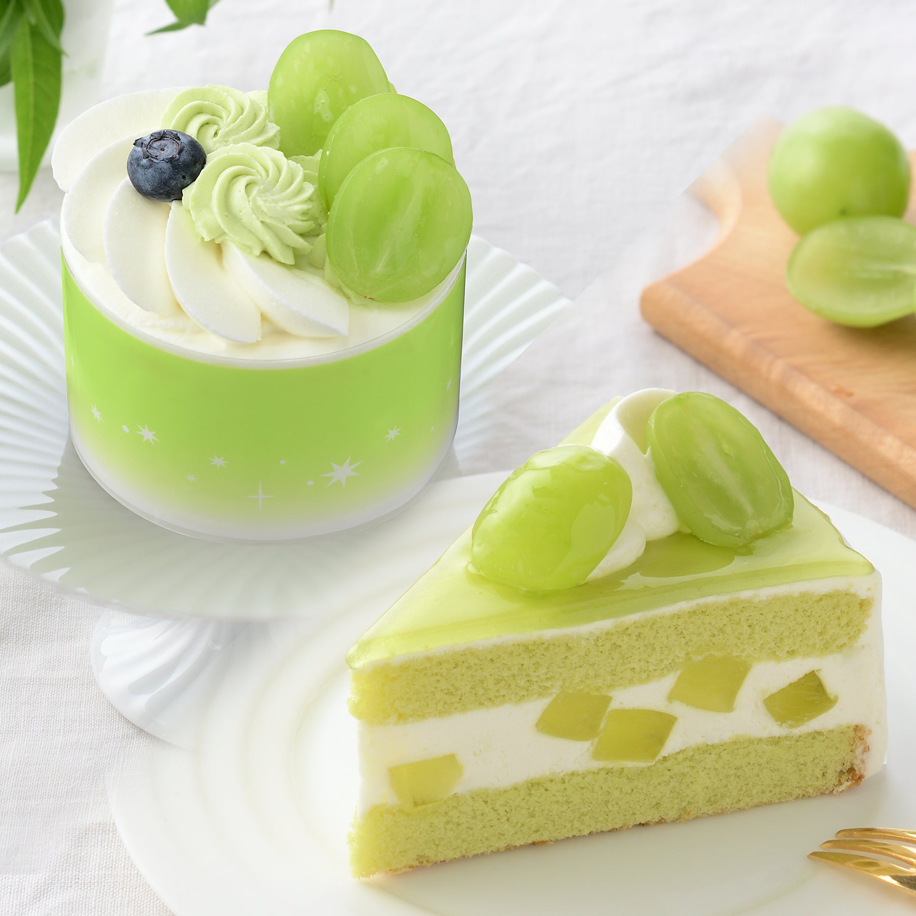 毎年人気の「シャインマスカットショート」を始め、ひとりじめサイズのデコレーションケーキ「コージープリンセス(シャインマスカット)」、贅沢に7粒飾った「シャインマスカットのデコレーション」に、今年は新たに「シャインマスカットパルフェ」が仲間入り。ゼリーやムースを層状に重ねた、見た目も爽やかなカップデザートです。