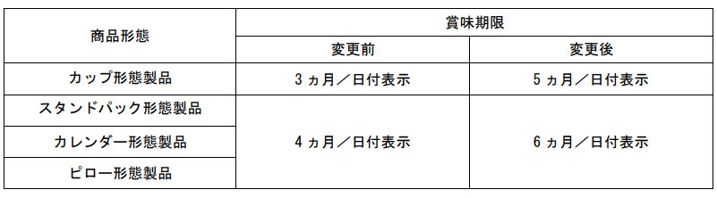 当社では、サプライチェーン全体にわたるフードロス削減や、お得意先様や売り場での作業効率改善への貢献を目的とした製造プロセスの見直し(改善)により、今般、賞味期限の延長が可能となりました。店頭では、8月21日週を目途に、順次切り替えをスタートしております。