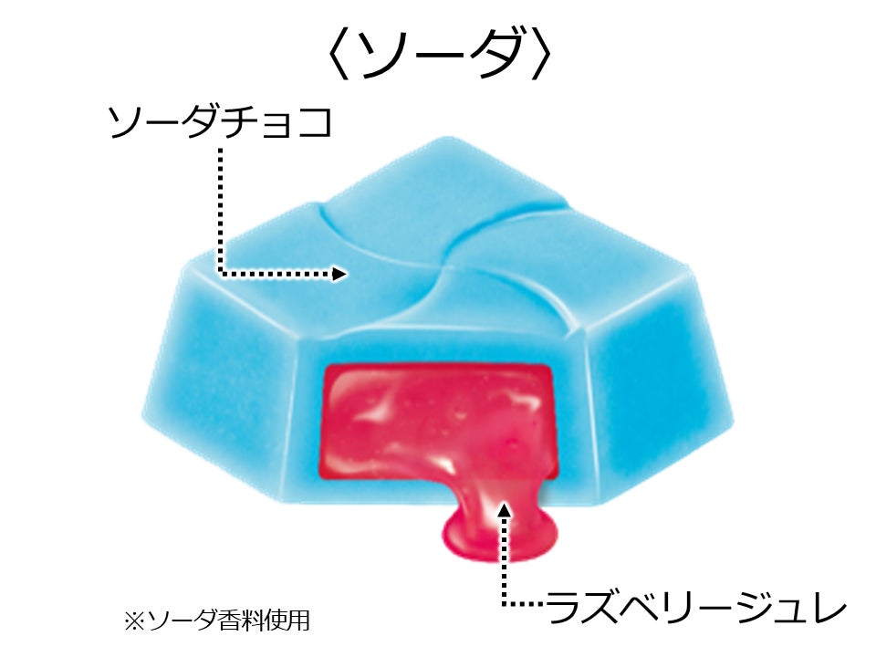 たっぷりのラズベリージュレをソーダ風味のチョコで包みました。