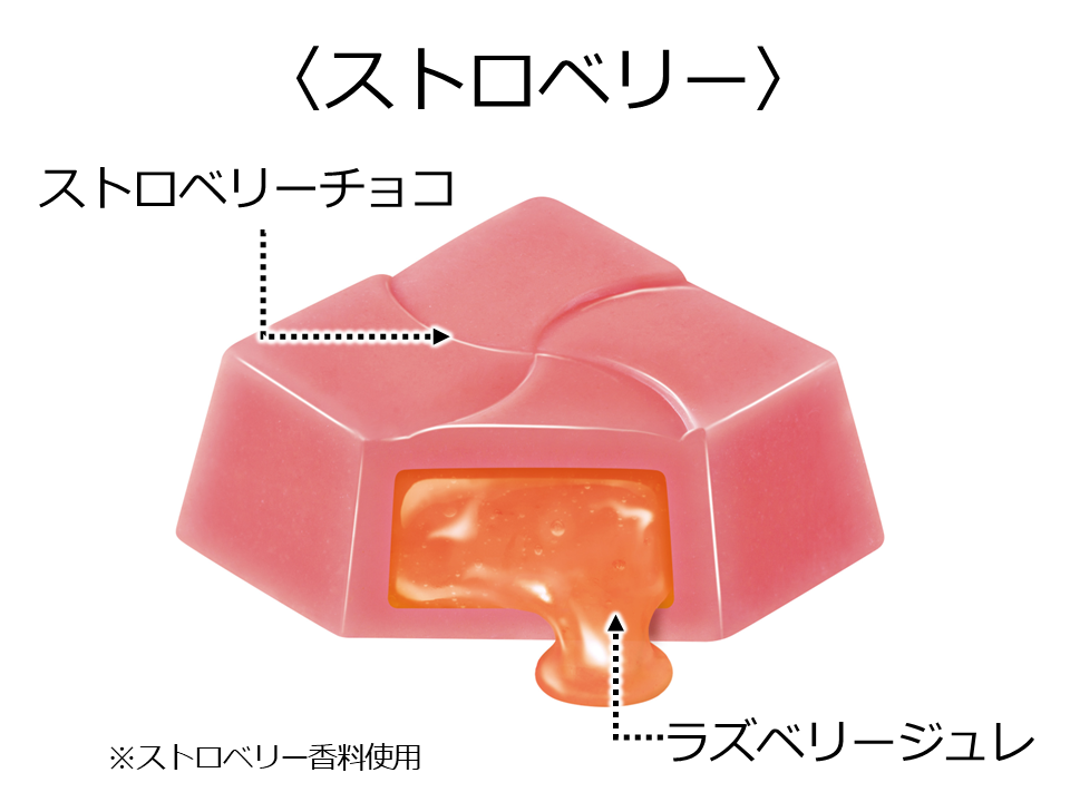 たっぷりのラズベリージュレをストロベリー風味のチョコで包みました。