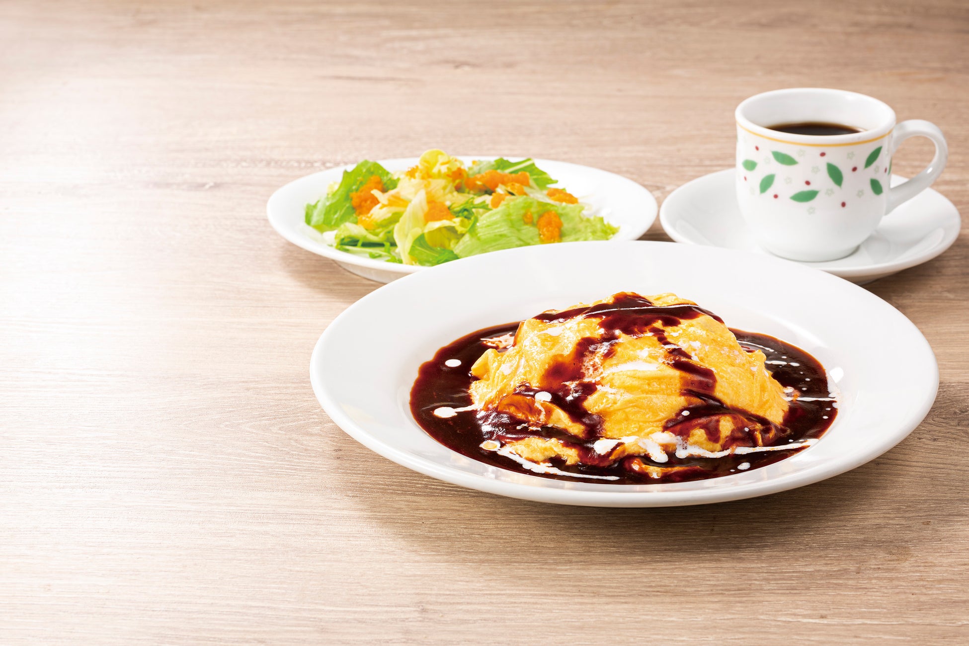 【とろ~り卵とチーズのオムライスセット】 セットサラダ・ドリンクバーつき 1,264円(税込1,390円)