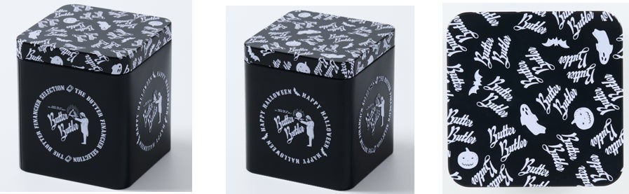 アフターユース性の高いシックな缶に、よく見ると遊び心あるハロウィンモチーフのデザインが描かれています!バターバトラーのパティシエ自信作の2種類のフィナンシェと一緒にハロウィン気分も楽しんでみては如何でしょうか。