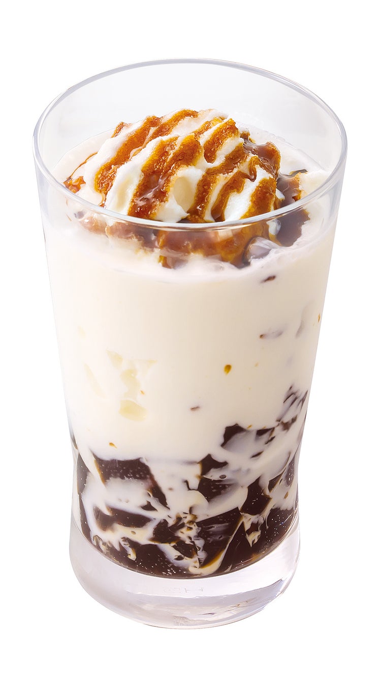 ドリンク2種類は、サンマルクカフェで一番人気のパフェ『コーヒーゼリーパフェ』をドリンクで表現した、コーヒーのほろ苦さとミルクのコクのある甘さがバランスよく合わさった、まるで“飲むコーヒーゼリーパフェ”です。