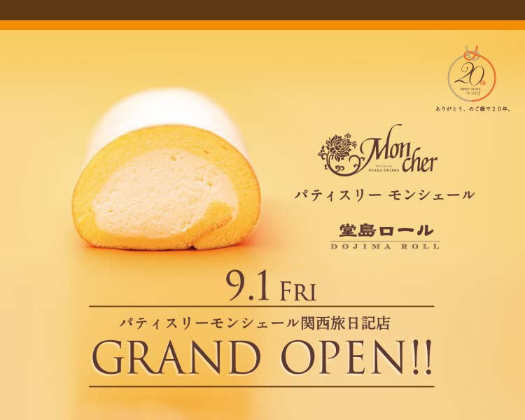 「堂島ロール」で知られる株式会社Moncher(モンシェール)(代表取締役社長:金美花 本社:大阪市北区堂島浜)は、今年創業20年目を迎えるにあたり、大阪国際空港2階出発・到着フロアにオープン。