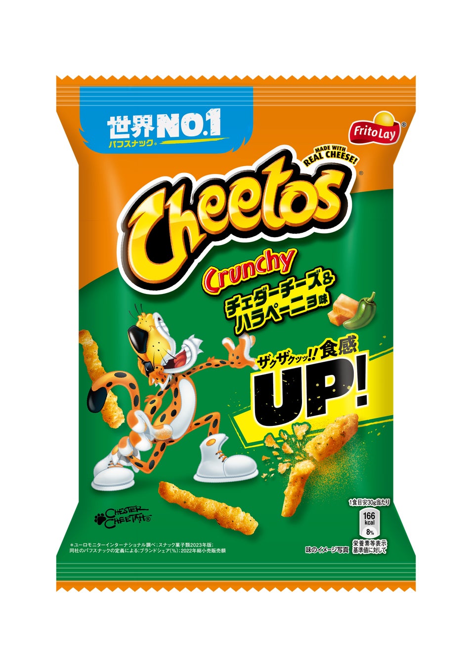 2021年1月に期間限定で発売した海外で大人気の定番フレーバー『チートス チェダーチーズ&ハラペーニョ味』が、日本でも定番商品になって新登場。パワーアップした“ザクザクッッ!!”食感と、ハラペーニョとチェダーチーズの旨辛な味わいがやみつきになる商品です。