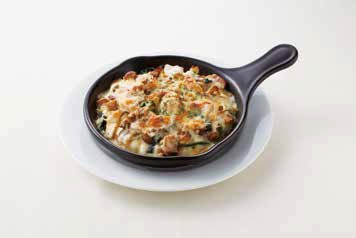 3種のきのこ・鶏肉・ほうれん草に、きのこクリーム・ホワイトソースをかけ、オーブンで風味豊かに焼き上げました。