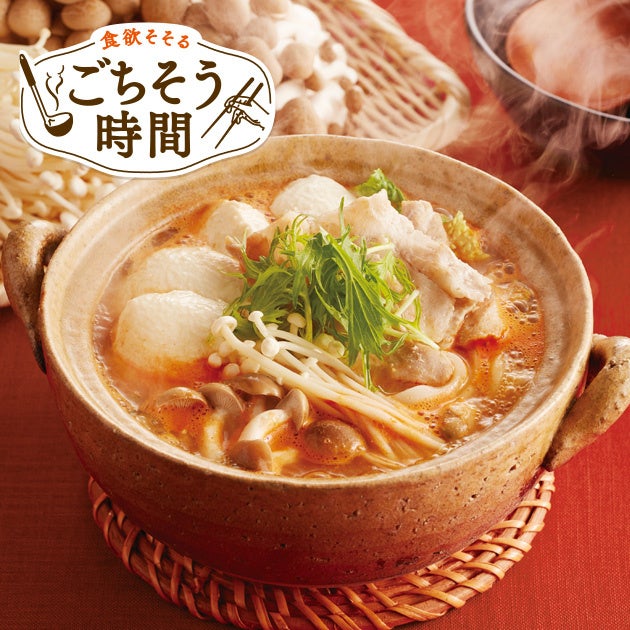 食材の旨味が光る「豚肉ときのこのスンドゥブチゲ定食」や秋にピッタリのデザート「2色のたっぷりぶどうの贅沢パフェ」など、計8品をご用意しました。ぜひこの機会にジョイフルの「食欲そそるごちそう時間」メニューをご賞味ください。