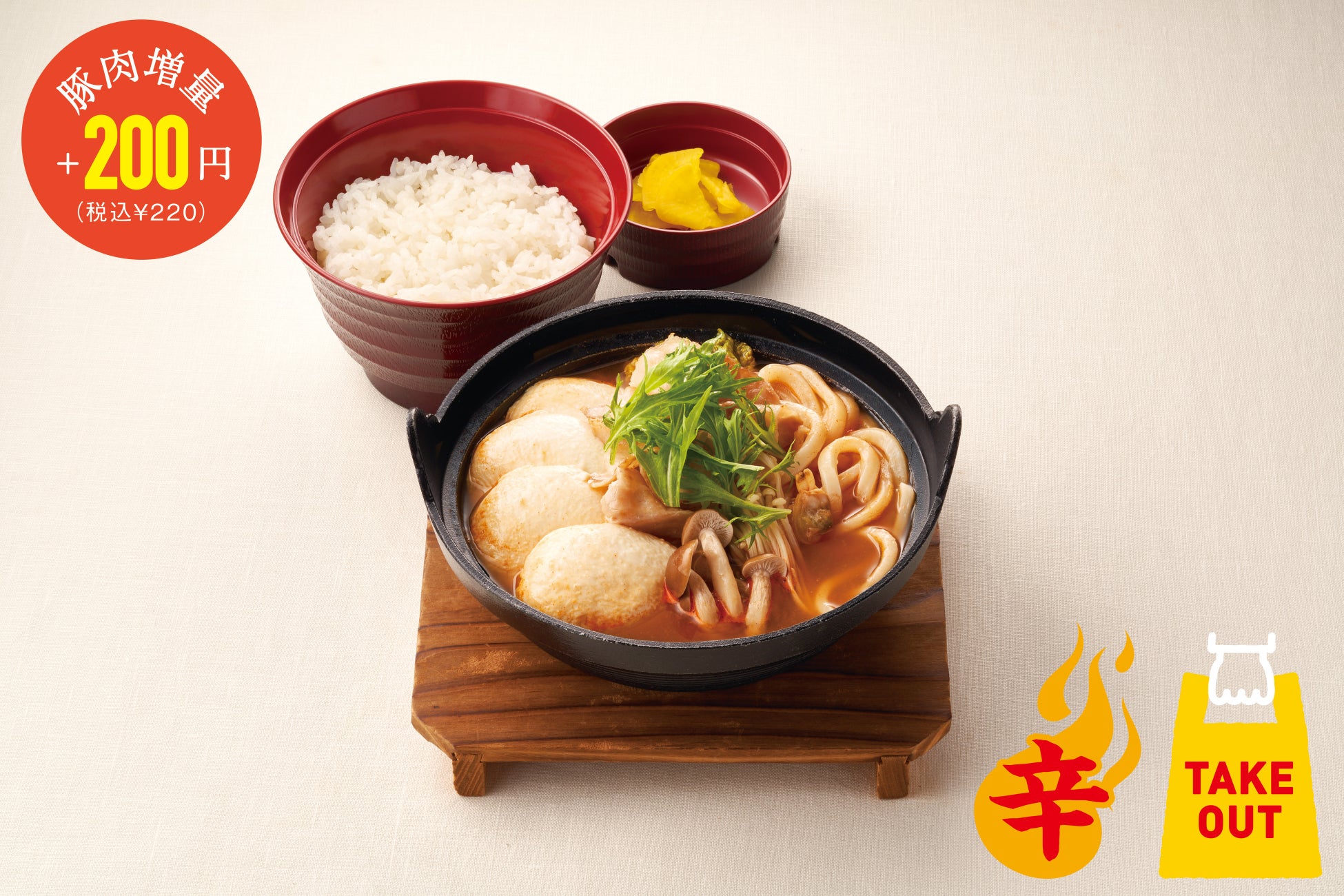 ※豚肉増量(追加):¥200(税込¥220)