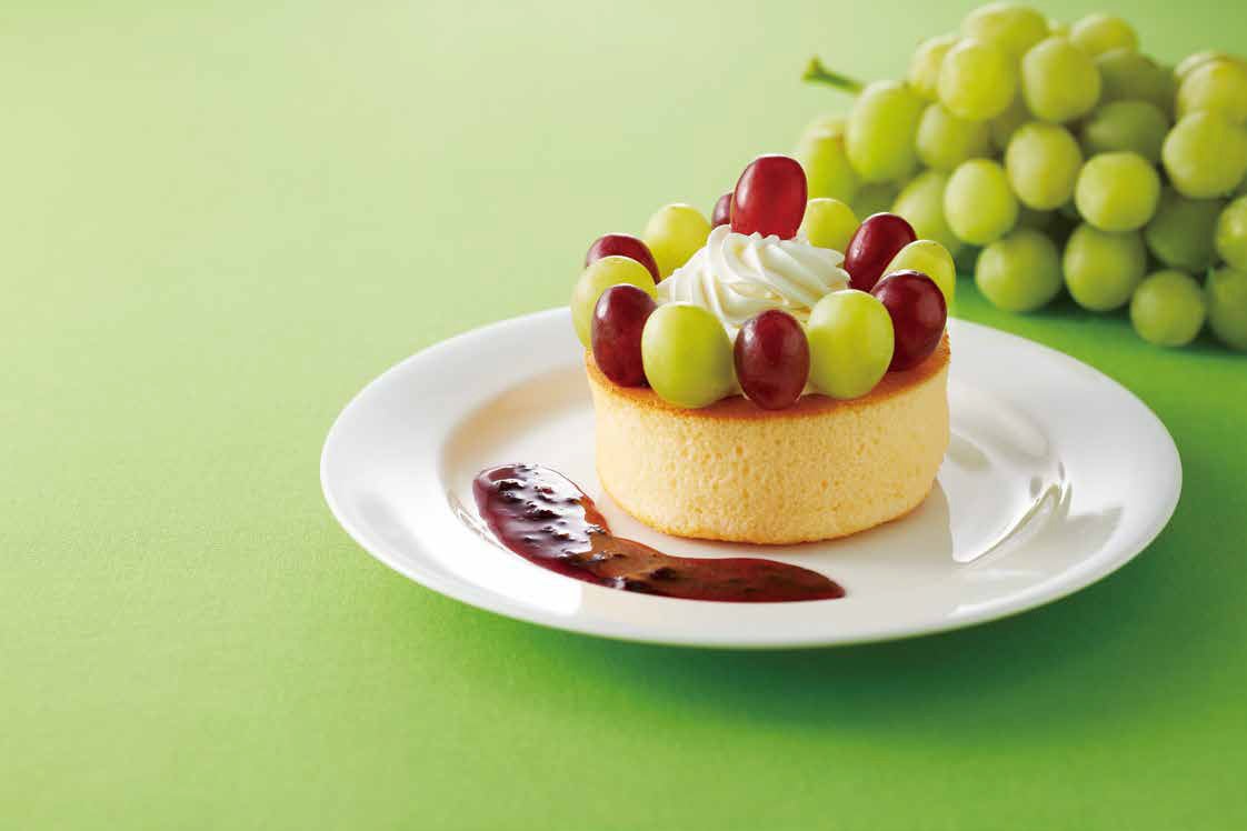 甘さのコントラストが異なる赤と白のぶどうを、ふわふわの生地とご一緒にお召し上がりください。