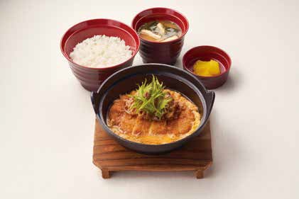 牛肉とロースかつを出汁で煮込み、卵でとじてボリューミーに仕上げています。