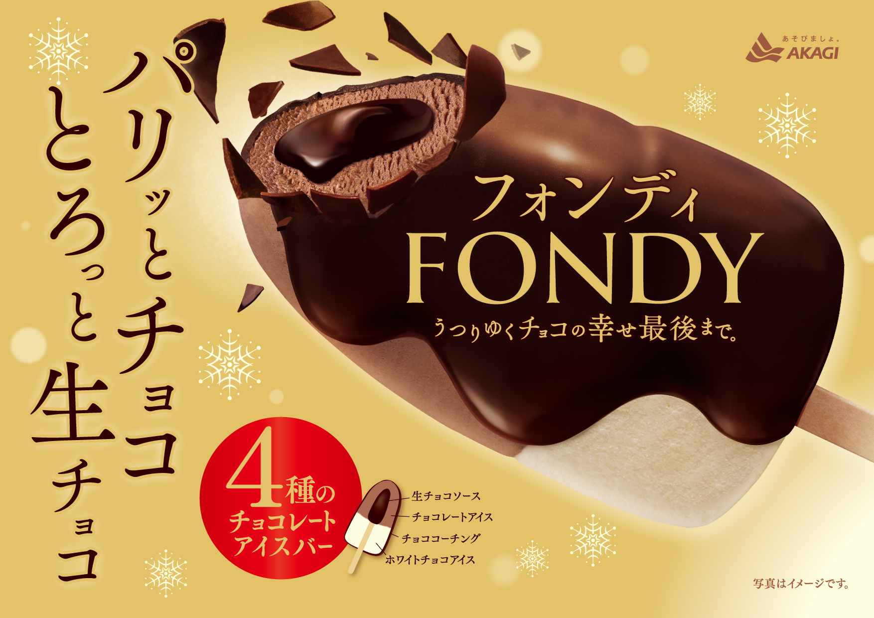 トップ / 記事一覧 / プレスリリース / 「パリッとチョコ」と「とろっと生チョコ」が至福!早くも発売5年目を迎える、チョコづくしの秋冬向けチョコレートアイスクリーム!今年は4種のチョコが味わえる!「フォンディ」