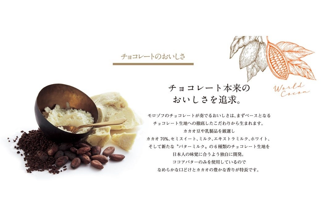 洋酒を使わず表現した多彩な味わいに新たな魅力を添えて、幅広い世代に「モロゾフのチョコレートの美味しさ、選ぶ楽しさ」をお届けしてまいります。