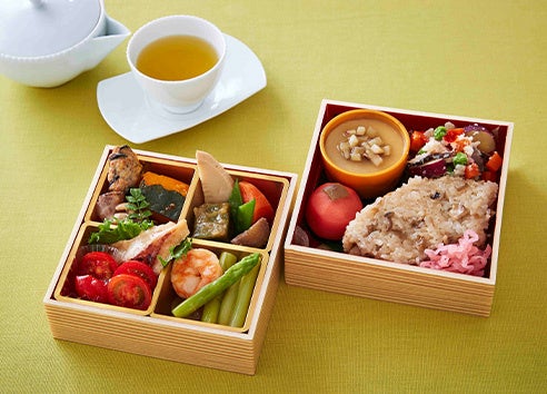 季節の炊込みご飯と揚げ物、焼き物、煮物、 和え物、甘未など多彩なメニューをお愉しみいただけるお弁当です。