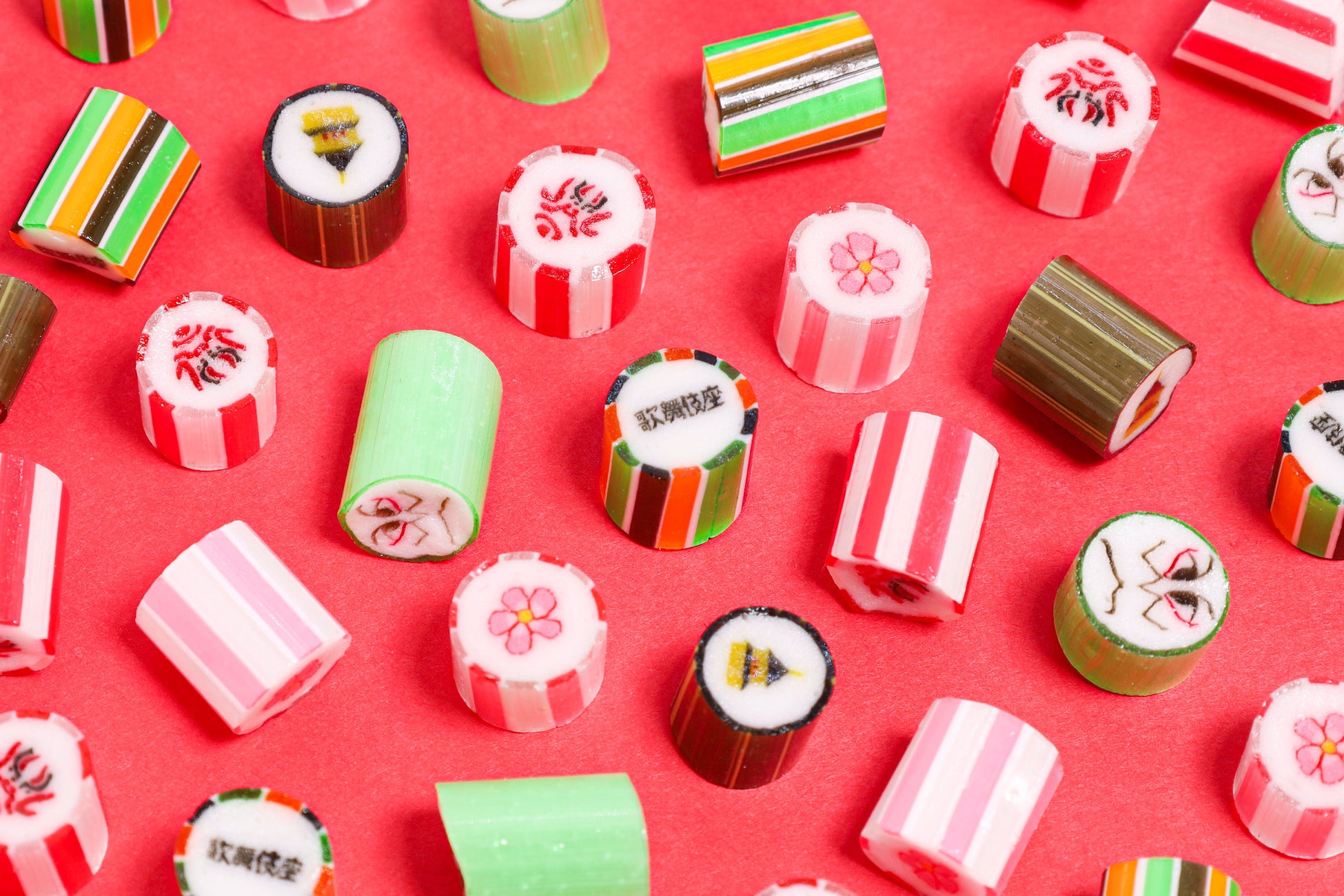 演目をモチーフにした「金閣寺」や「桜」の柄や、1889年木挽町に誕生して以来愛されている隈取柄など、歌舞伎座にちなんだキャンディをご用意。