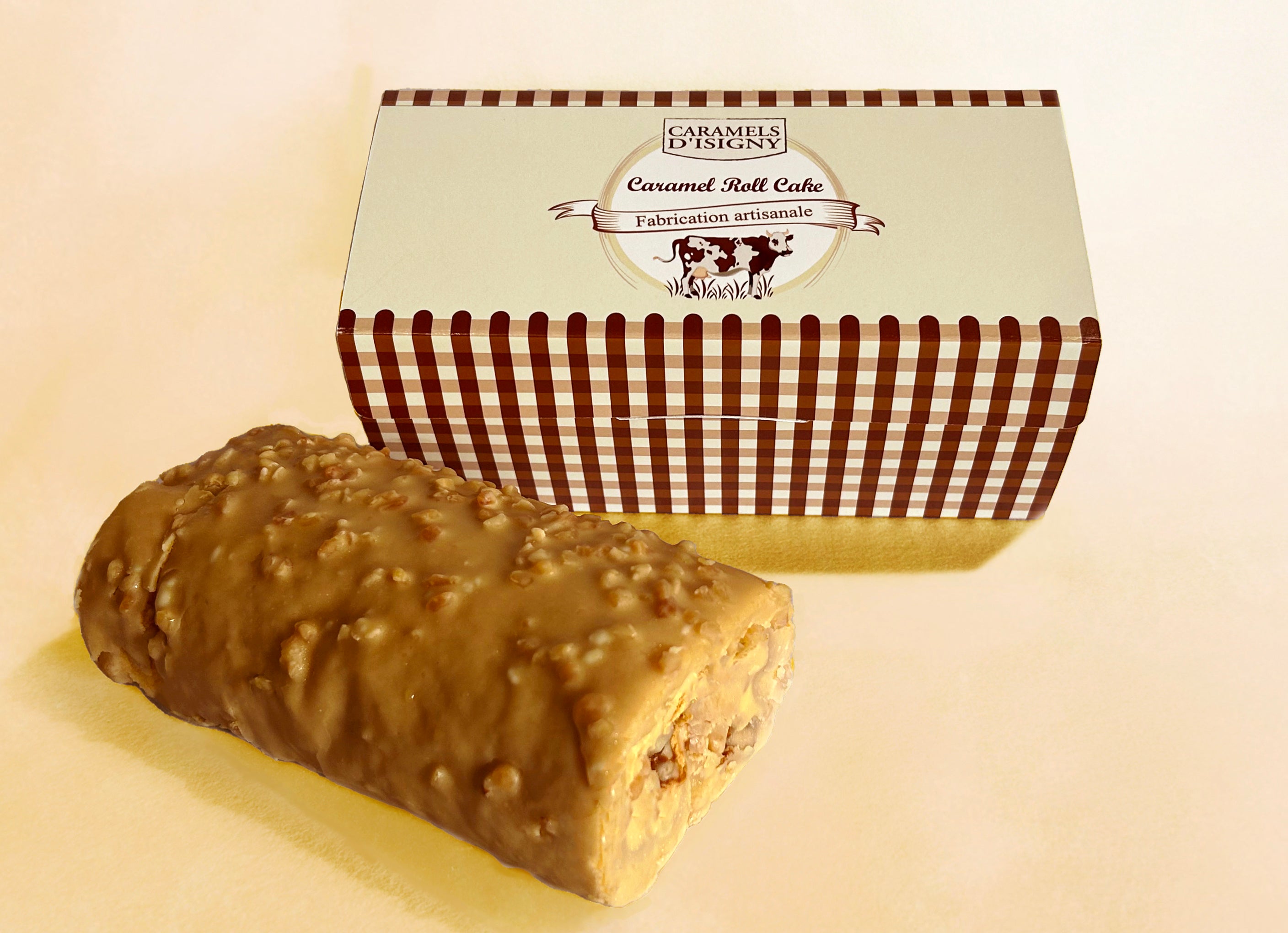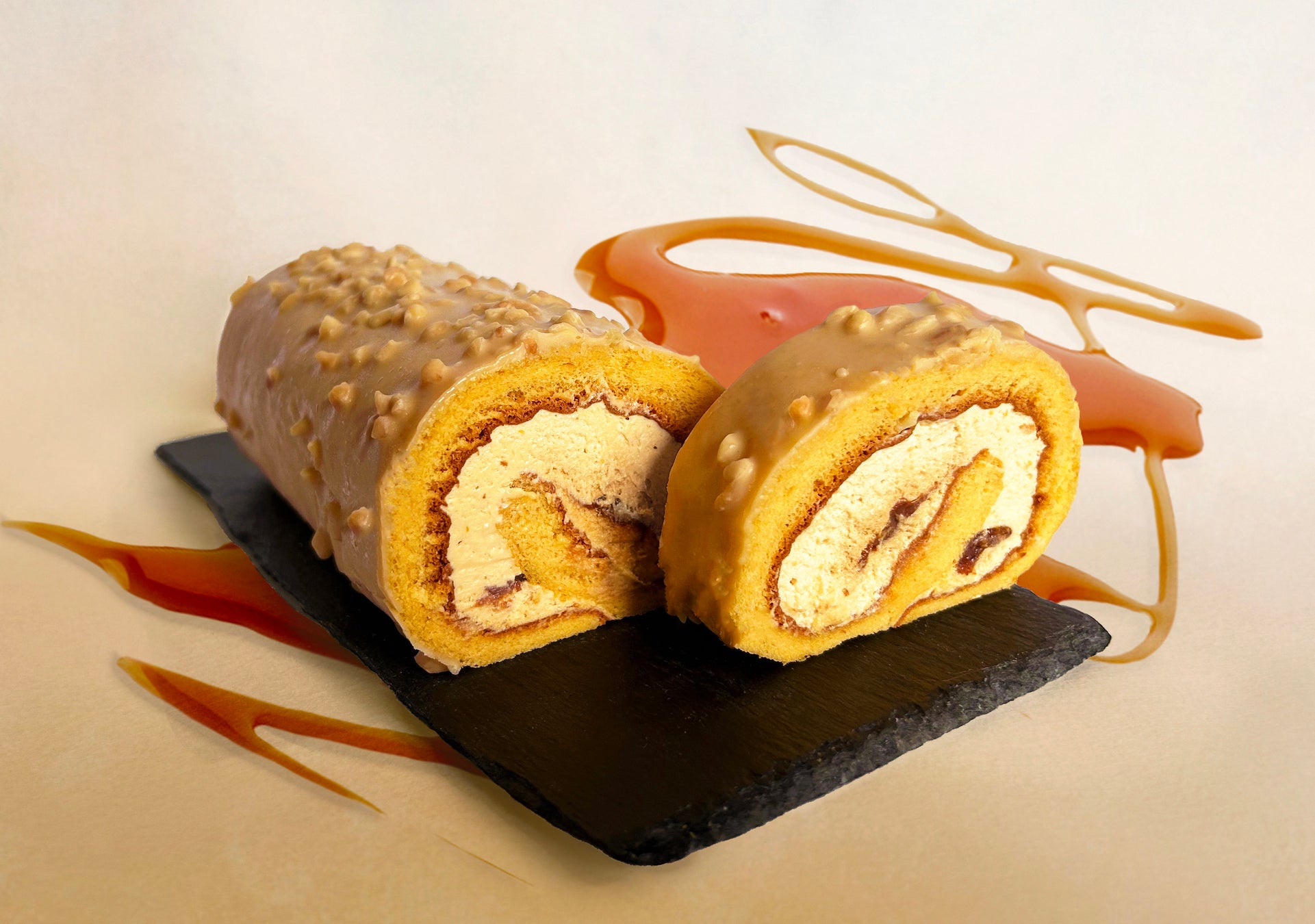 濃厚なコクと上品な甘みが広がるイズニーキャラメルを贅沢に使ったキャラメルロールケーキをお楽しみください。
