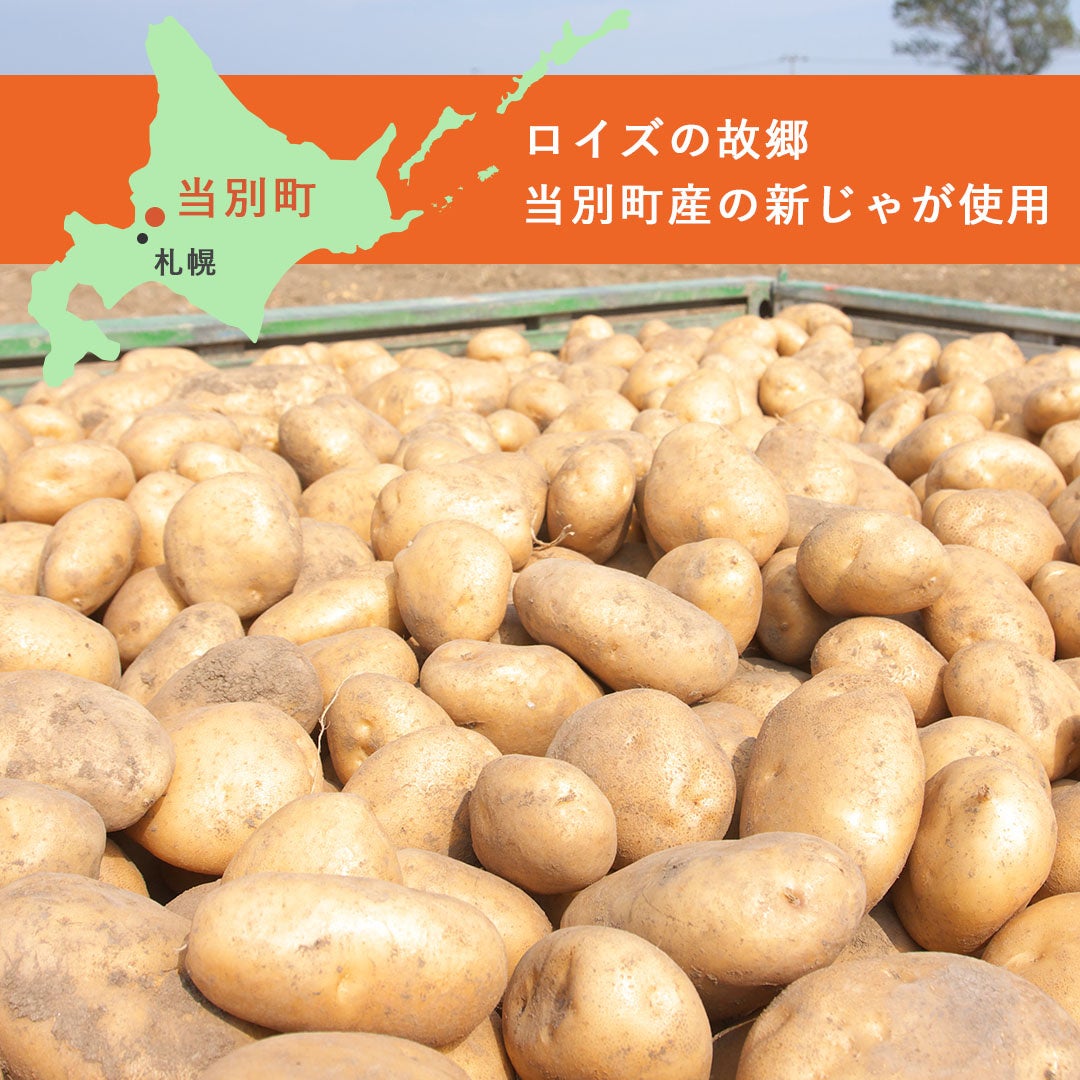 ロイズタウン工場がある北海道当別町で、今年収穫した“新じゃが”だけを使用したポテトチップの片面に、口どけの良いまろやかなチョコレートをコーティング。まろやかでやさしい口あたりのチョコレートをコーティングすることで、新じゃがの味わいをより楽しめるおいしさに仕上げました。毎秋限定の味わいをぜひ今年もどうぞ。