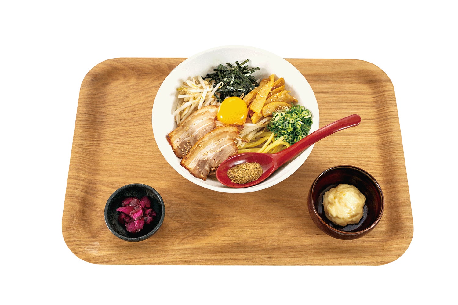 濃厚な特製ダレをしっかりと味わえる「まぜそば単品」と、ご飯と一緒にガッツリ食べたい方向けに「まぜそば定食」をそれぞれご用意いたしております。定食の場合は残ったスープにご飯を加え、最後の一滴までお楽しみください。