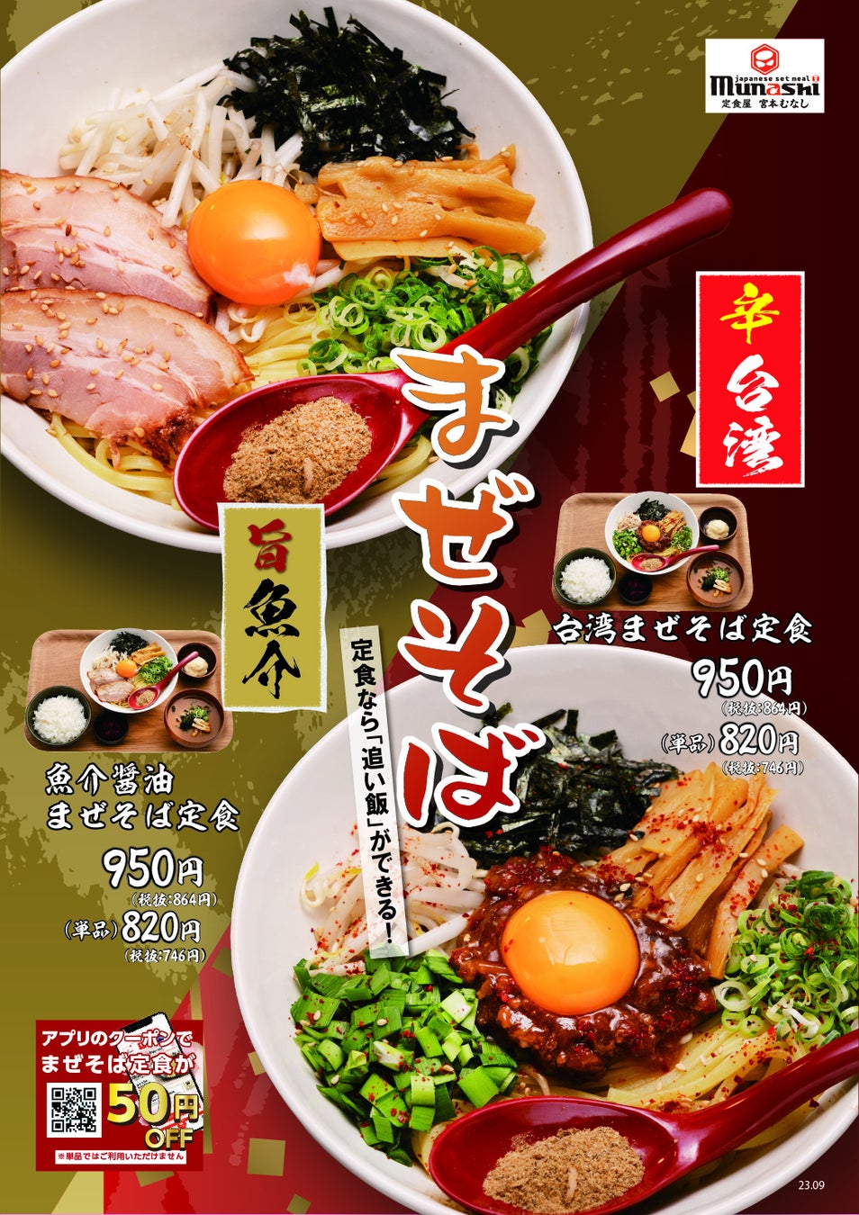 【定食屋 宮本むなし】9/20から、「まぜそば定食」を期間限定で販売開始!