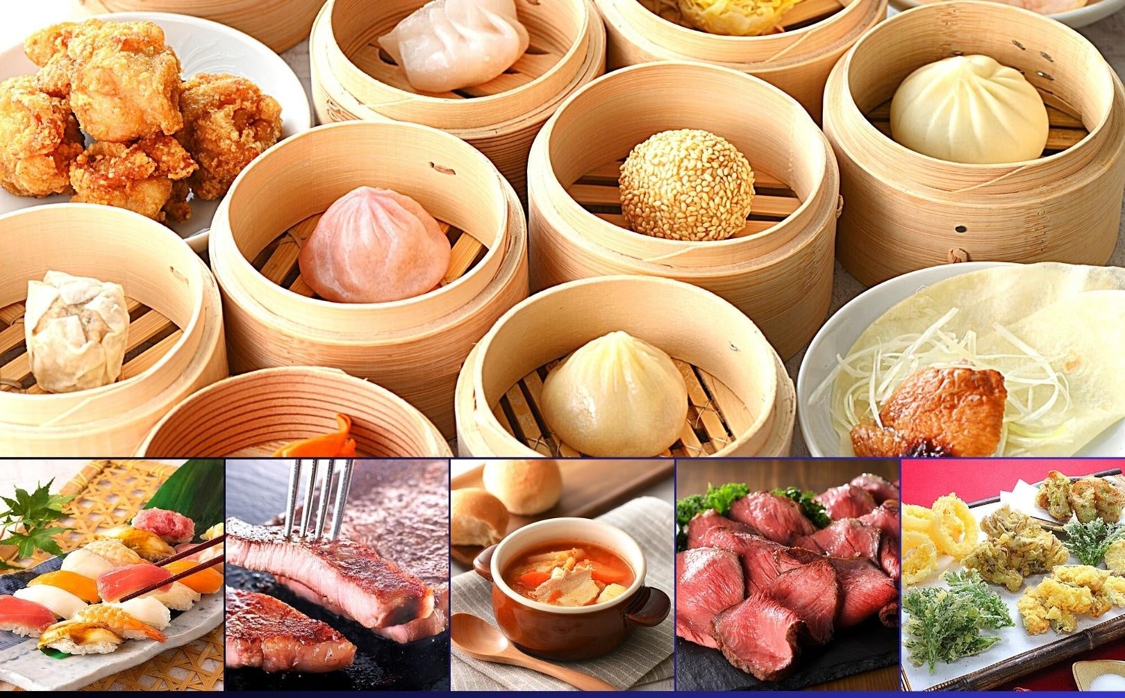 中でも、熱々の肉汁がほとばしる『自家製台湾小籠包』などが堪能できる『飲茶』のほかに、お子様も大好きなネタを取り揃えた『握り寿司』や『ビーフステーキ』、低温焼成でじっくりと肉の旨みを閉じ込めた『自家製ローストビーフ』など、すべて食べ放題!