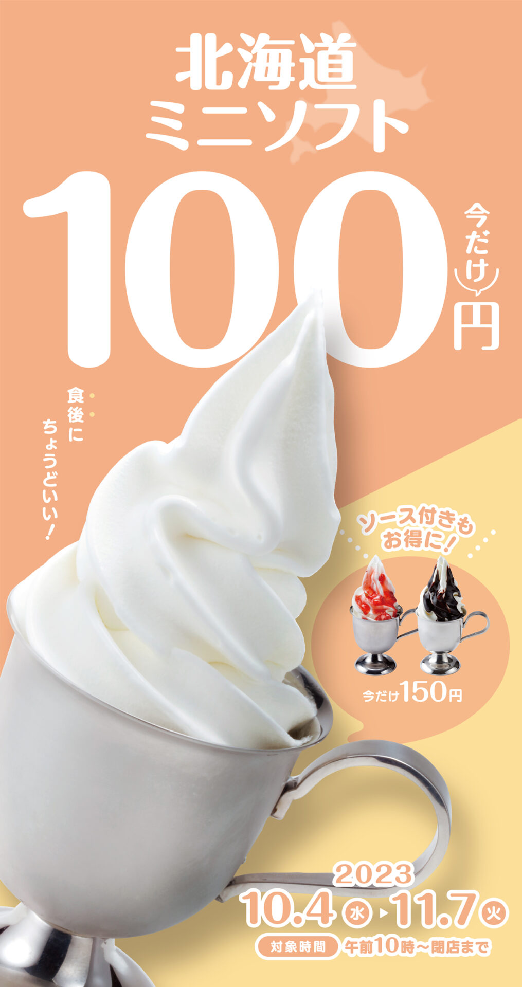 「北海道ミニソフト」が期間限定100円で楽しめるこのチャンスに、是非びっくりドンキーこだわりの味をご堪能ください。