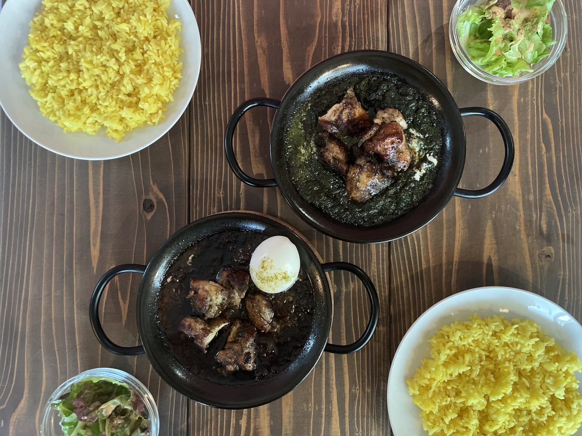 トマトチキンカレーは、さらっとしたルーが特徴的。トマトの酸味とスパイスが効いたパンチのあるカレーで香ばしいチキンとの相性も抜群です。ほうれん草チキンカレーは水を加えない濃厚なルーで、食べていくうちにじわじわと辛さを感じます。こちらもトマトチキンカレーと同様、香ばしく焼き上げたチキンとよくマッチします。トマトチキンは比較的スパイシーで、ほうれん草チキンはマイルドな仕上がりになっています。ライスは黄金に輝くターメリックライスを提供。本メニューは全て、鉄皿で提供されるのでアツアツの状態のまま食べられるのもヨゴロウならではのこだわりポイントです。トッピングメニューはチーズと半熟卵の2種類となっており、スパイスの効いたルーに程よくマイルドさが足され、また違った味わいが楽しめます。