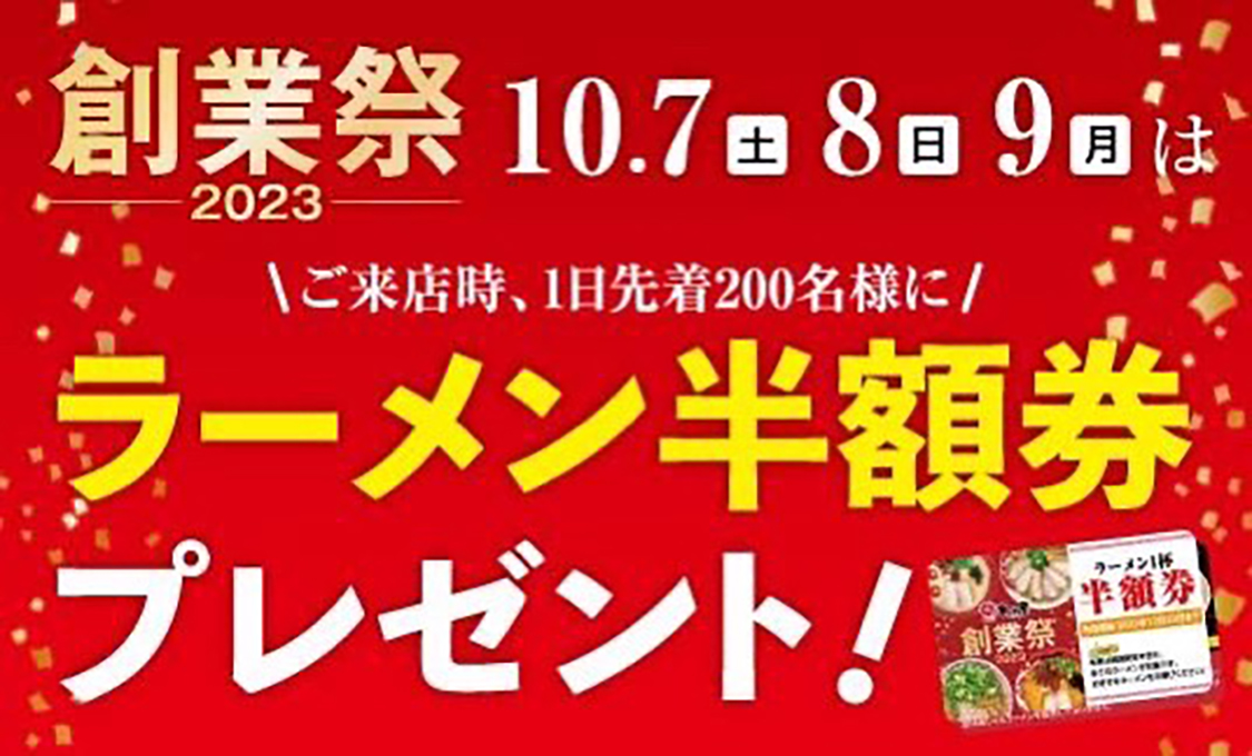 創業祭『次回使える“お好きなラーメン半額券”プレゼント』の詳細