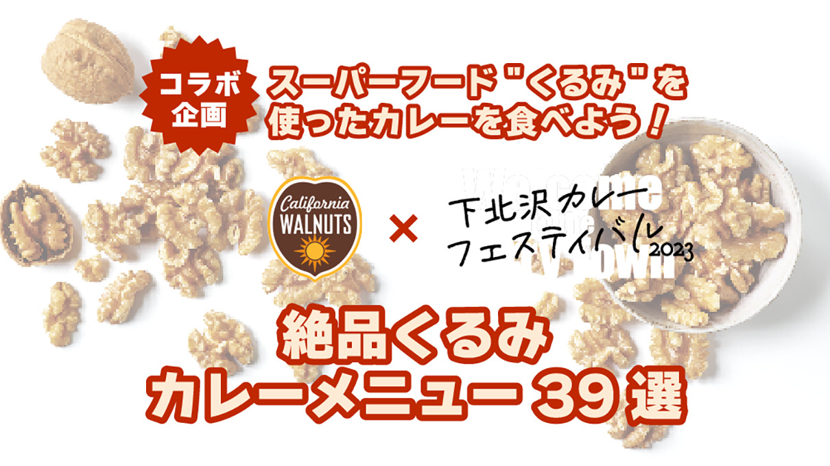 スパイラル株式会社(東京都港区、代表取締役CEO 佐谷宣昭、以下「スパイラル」)は、カリフォルニアのくるみ生産農家と加工業者を代表する米国農務省の外郭団体であるカリフォルニア くるみ協会とコラボし、2023年10月5日(木)〜10月22日(日)まで開催する「下北沢カレーフェスティバル2023(以下「下北沢カレーフェス」)」に参加する39店舗にて、カレーとカリフォルニアくるみのコラボメニューを販売します。