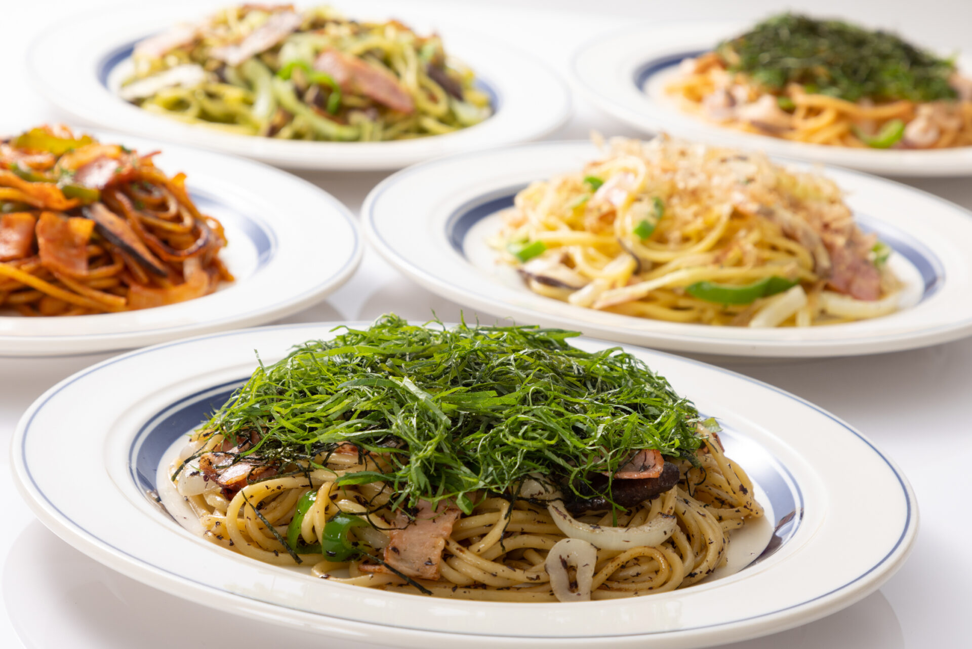 レトロながらも新しさを感じる定番から本格的なものまで20種類のスパゲッティと、さらに12種類のトッピングをご用意。