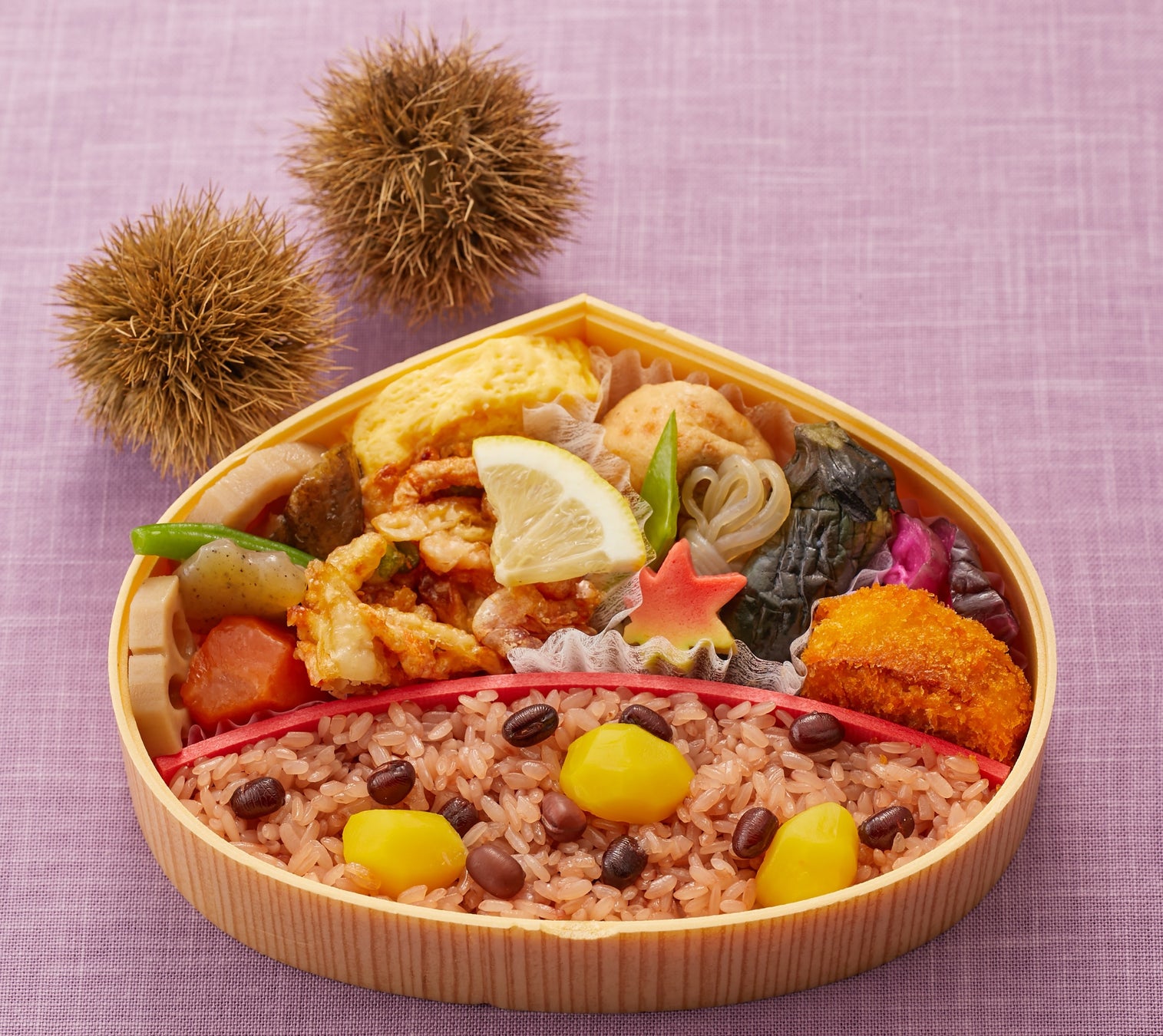 こだわりの赤飯が入った、栗の形がかわいいお弁当。