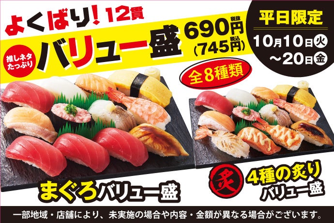 平日限定!ボリューム満点12貫♪「よくばり!バリュー盛フェア」開催!