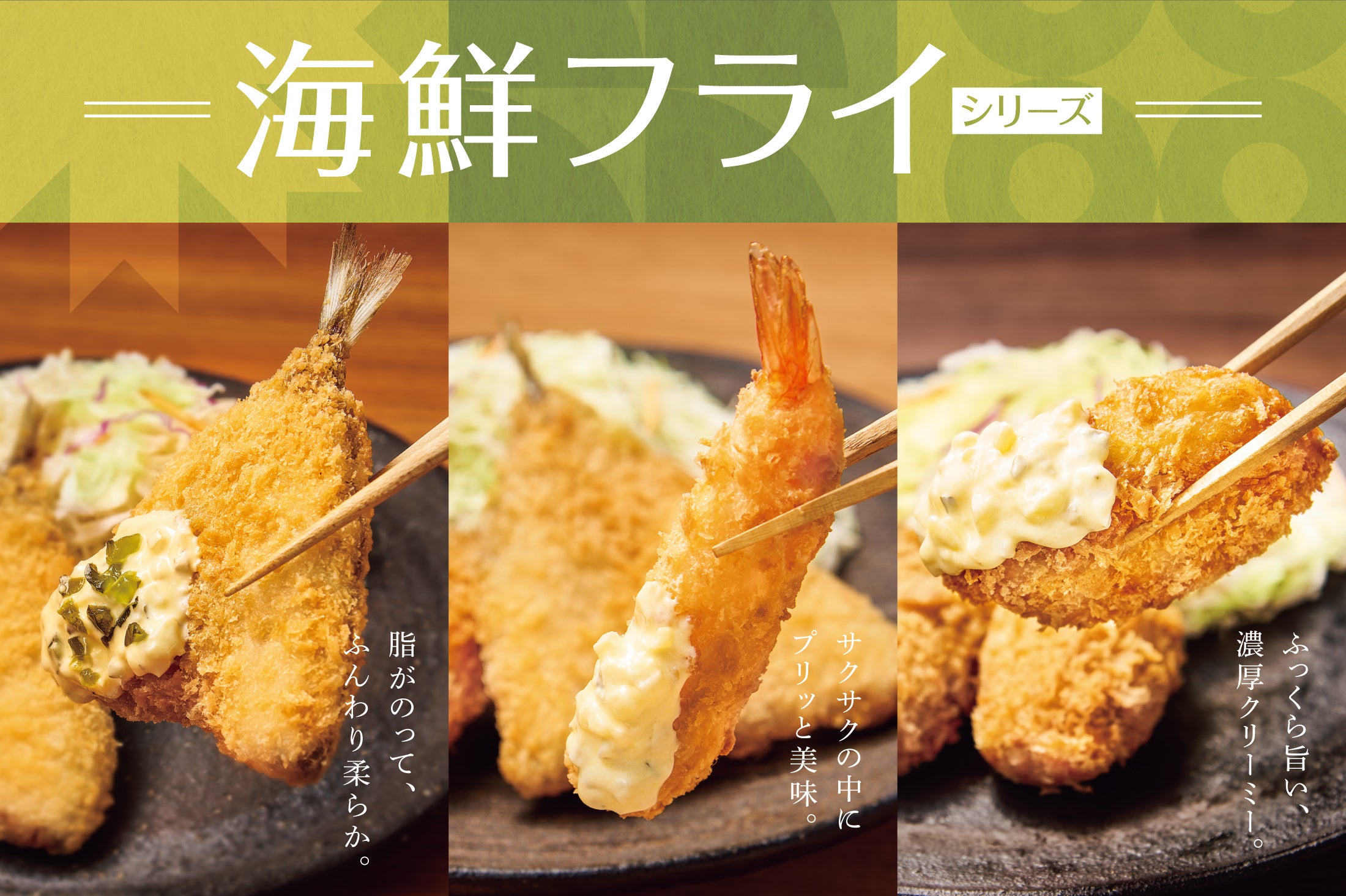 「やよい軒」の“海鮮フライシリーズ”として3定食を発売します。『かきフライミックス定食』は、かきフライ2個、エビフライ1個、アジフライ1個と、バラエティ豊かでボリューム満点です。ジューシーでクリーミーな味わいが魅力のかきフライは、薄い衣でさっくりと揚げることで、より牡蠣の旨みが引き立ちます。また、専門店ができるほどブームになりつつあるアジフライは、衣はサクッと、身はフワッと仕上げており、アジの旨みをより感じられます。